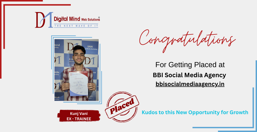 Digital Marketing Course in Indore By Digital Mind Web Solutions which is Indore’s No#1 and Best Digital Marketing Training in Indore and provides Quality course with 100% placement assistance. under the mentorship of Vajid Khan (Digital Coach & Consultant) having more than 10 years experience in the Digital marketing field and born 5200+ students / professionals, job seekers and entrepreneur those work with many startups and e-commerce company like Myntra, Flipkart, Firstcry and counting more than 600+ Digital IT Companies from all over India.