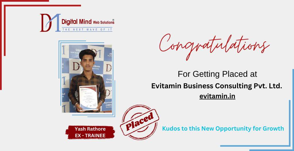 Digital Marketing Course in Indore By Digital Mind Web Solutions which is Indore’s No#1 and Best Digital Marketing Training in Indore and provides Quality course with 100% placement assistance. under the mentorship of Vajid Khan (Digital Coach & Consultant) having more than 10 years experience in the Digital marketing field and born 5200+ students / professionals, job seekers and entrepreneur those work with many startups and e-commerce company like Myntra, Flipkart, Firstcry and counting more than 600+ Digital IT Companies from all over India.